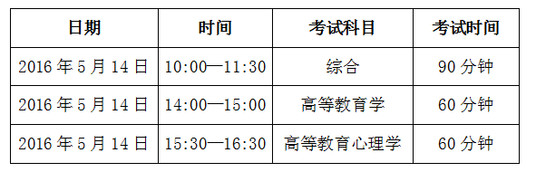 科目一为《高等教育学》,科目二为《高等教育心理学》,科目三为《综合》。考试方式为笔试,考试成绩满分均为100分。其中,具有博士学位、副教授以上专业技术职务的老师以及修学教育学、心理学课程成绩合格且参加教育实习成绩合格的普通院校师范类毕业生,可免试《高等教育学》《高等教育心理学》科目。