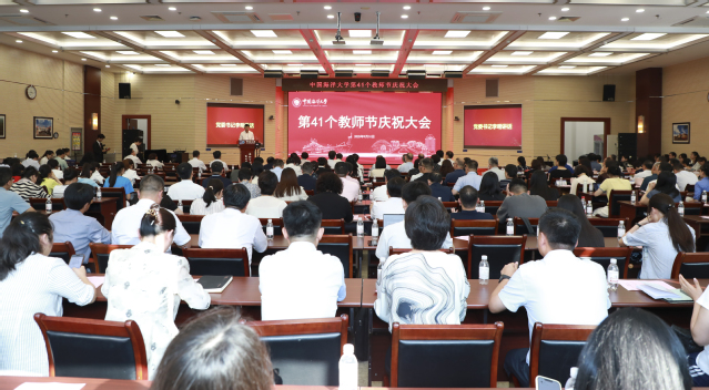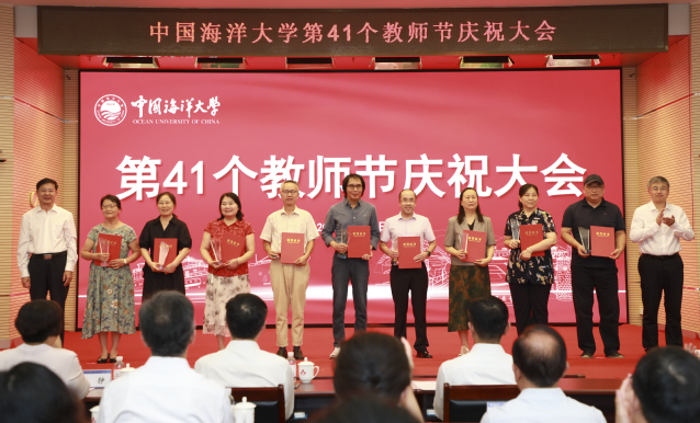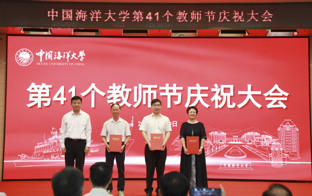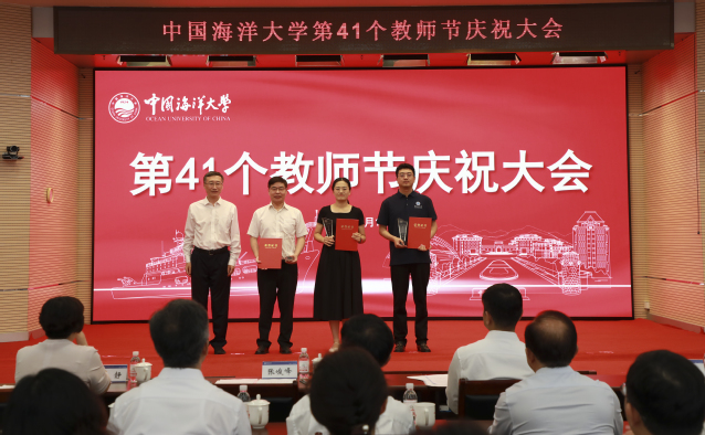 本站讯 9月10日下午,中国海洋大学第41个教师节庆祝大会在图书馆第二会议室隆重举行。学校党委书记李明,校长张峻峰,中国工程院院士麦康森、薛长湖,学校其他党政领导张静、卢光志、杨茂椿、刘勇、范其伟、王厚杰、王雪鹏,党委常委,校长助理和师生代表欢聚一堂,共庆节日。