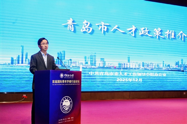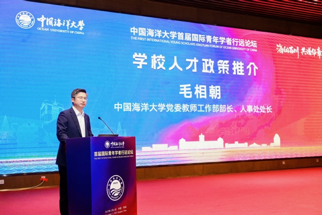 青岛市人才发展促进中心副主任严立洪作青岛市人才政策推介,向参会学者们系统介绍了青岛市最新人才政策。中国海洋大学党委教师工作部部长、人事处处长毛相朝作学校人才政策推介,从人才引育体系、人才晋升与成长通道、支持保障等方面系统解读了学校的人才引进政策和人才发展环境。