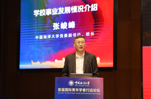 张峻峰以《海聚英才 创享未来》为题作学校事业发展情况介绍,向参会学者们全面介绍了学校百年办学底蕴、蓬勃发展现状,以及近年来人才队伍建设情况和支持青年人才成长成才有关举措成效。他指出,学校深入贯彻落实习近平总书记重要回信精神,着力强化新时代人才强校战略,大力实施“蓝色梦想铸魂强师计划”,加大人才引育力度,巩固和提升世界重要海洋人才中心和创新高地。他强调,学校无比重视人才、渴求人才,为广大青年才俊搭建了施展才能和干事创业的广阔舞台,诚邀海内外青年学者加盟,携手共筑教育强国、海洋强国梦。
